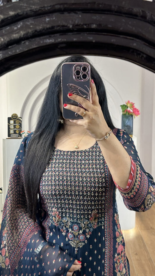Navy Blue Handworked Round Neck Kurti (HK11)