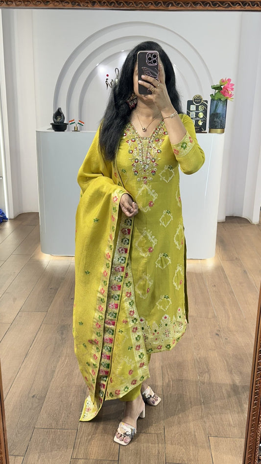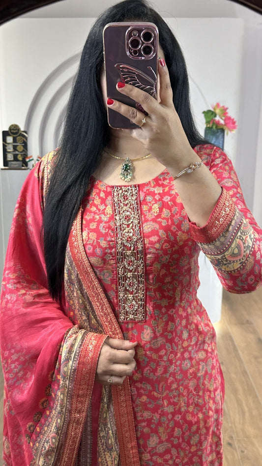 Neck work Readymade kurta pant with Dupatta set