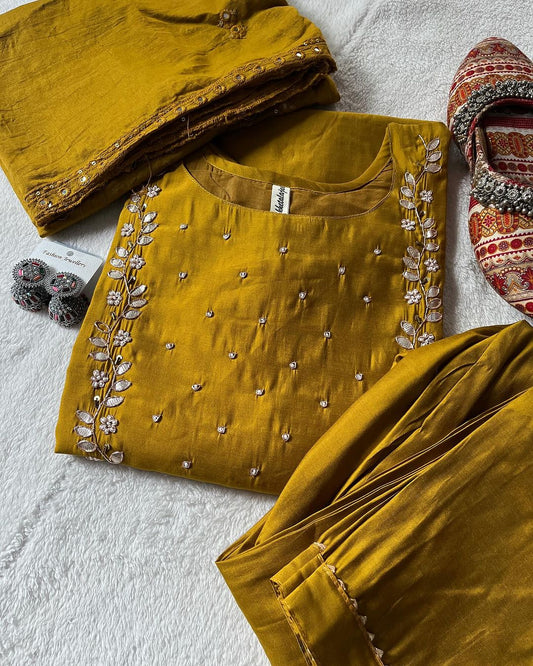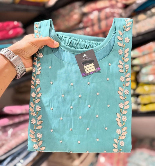 Sky Blue Neck work Readymade kurta pant with Dupatta set