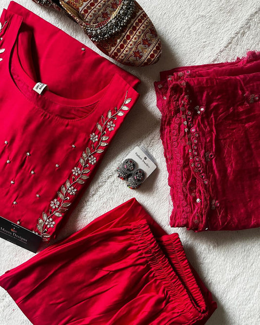 Baby Pink Neck work Readymade kurta pant with Dupatta set